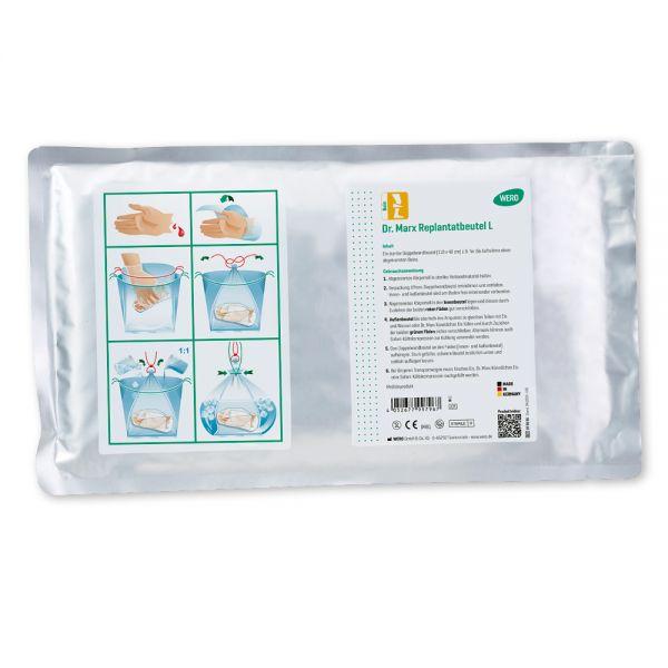 The AMPUTATE BAG is a double-walled bag, consisting of two sterile bags (first inside the second, sealed together) which allows cooling substances between the two bags, without direct contact between coolant and amputate.