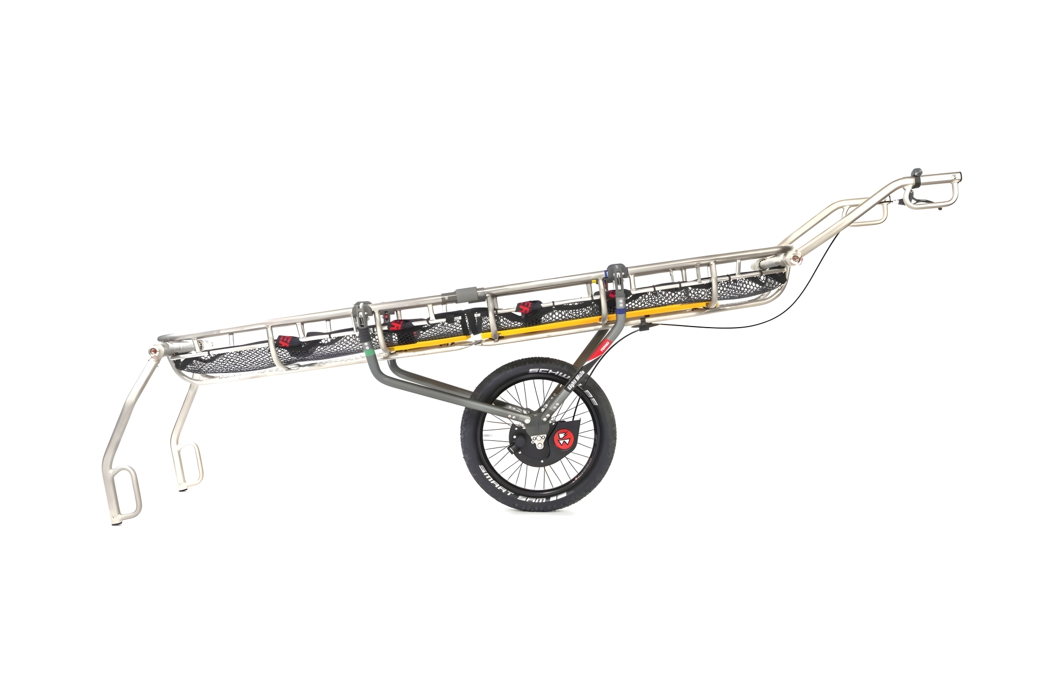 This specially designed lightweight wheel with a titanium frame, is engineered specifically for the Titan series rescue stretchers. Its innovative design allows for easy disassembly and portability, making it ideal for advanced rescue operations in challenging terrain. Weighing just 12 kg, this system offers unmatched convenience and performance for demanding situations. This solution should not be confused with simpler, more affordable, and heavier steel options available on the market.