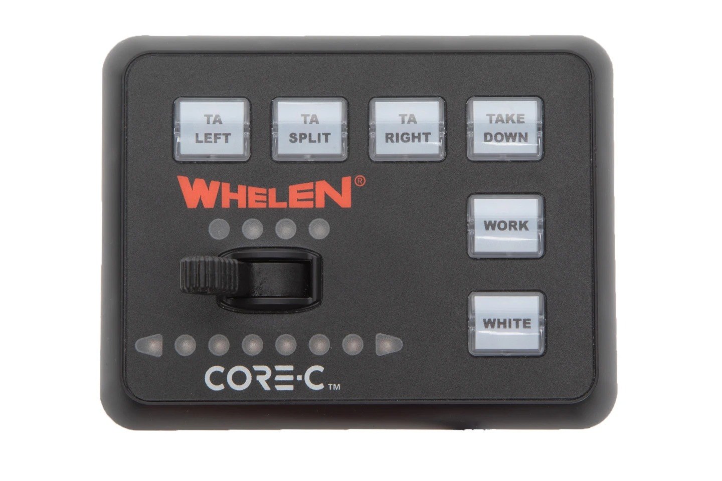 The Whelen Core-C® Control System is a compact and intelligent vehicle control solution designed to manage warning lights and auxiliary equipment on emergency, utility, and work vehicles. Combining the intelligence of a WeCanX® controller with the functionality of a control head in a single unit, Core-C offers a streamlined and efficient solution for modern vehicle lighting systems.