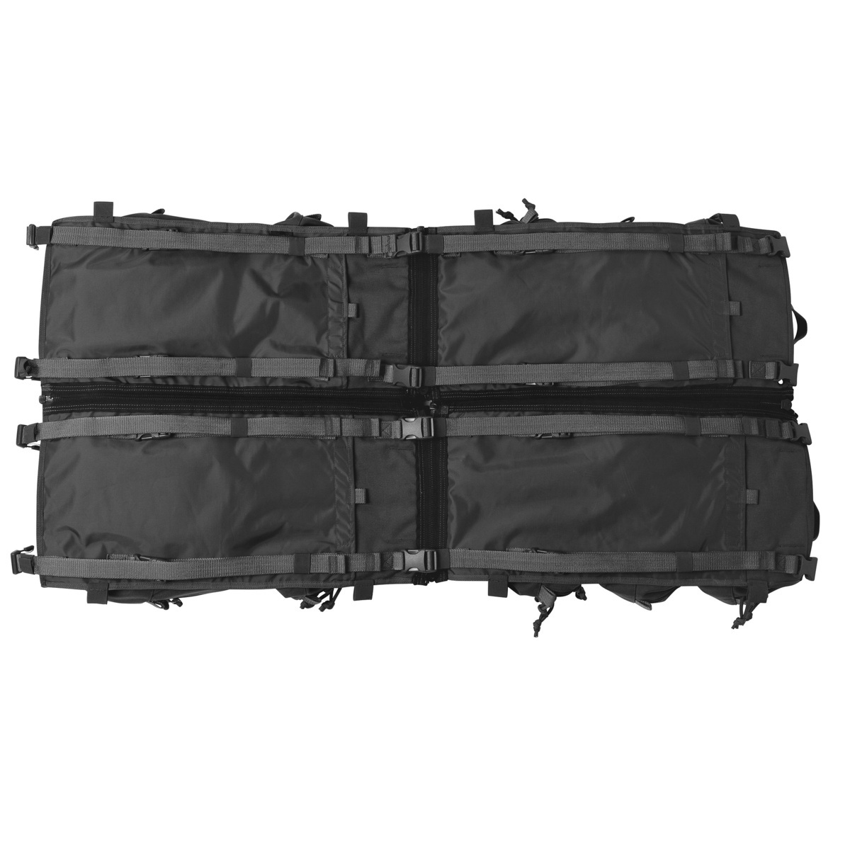 The system consists of a large, durable panel that divides into four smaller detachable panels, allowing teams to distribute medical supplies based on task, role, or treatment priority. This modular approach supports efficient casualty care, improves workflow, and enables multiple operators to work simultaneously.